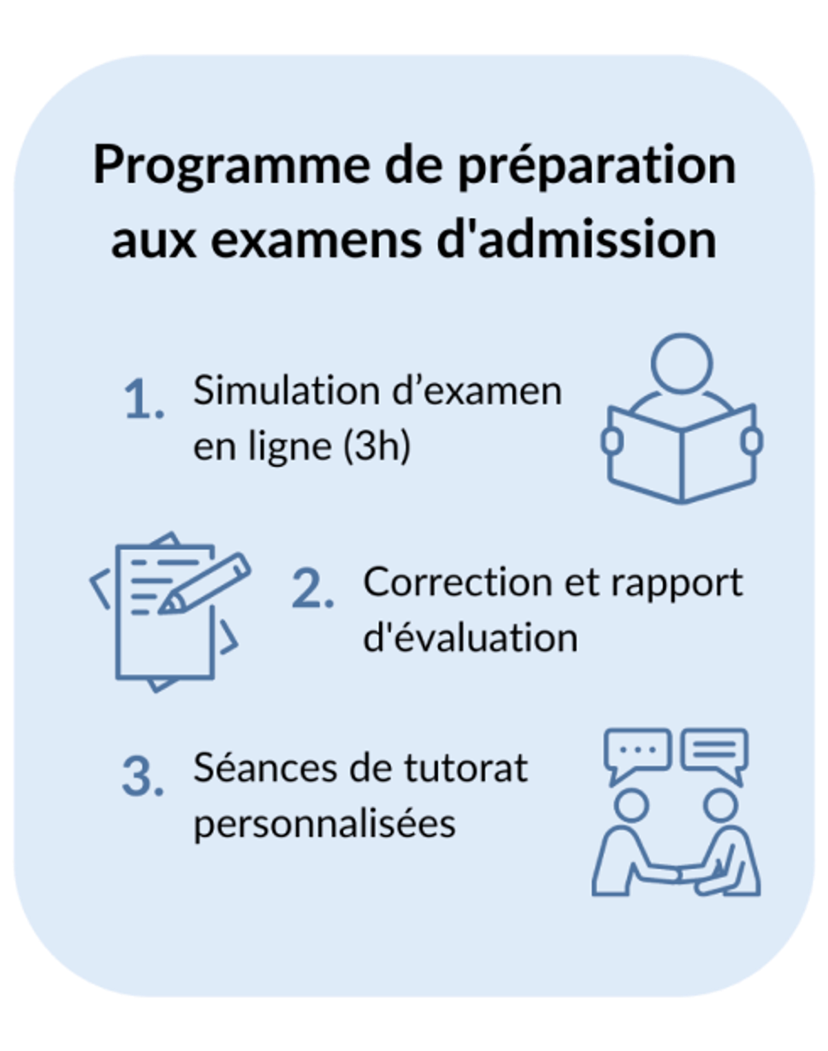 Pour en savoir plus sur la préparation aux examens d'admission, rendez-vous au chapitre 3.