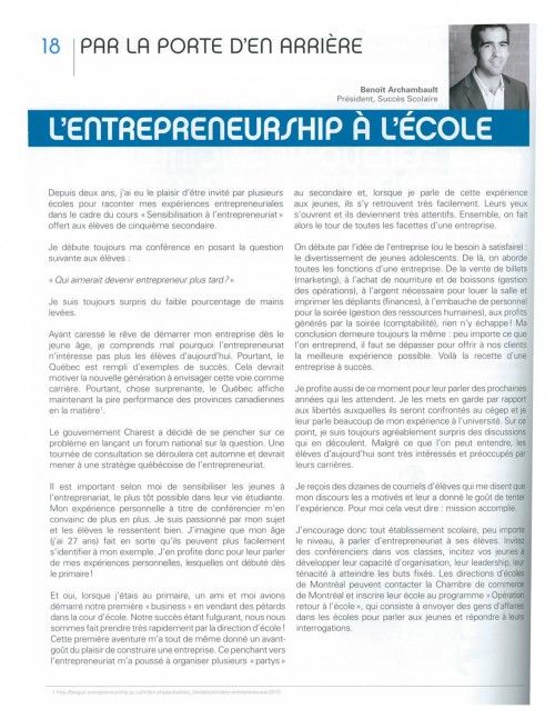 Chronique de Benoit Archambault sur l'entrepreneuriat à l'école